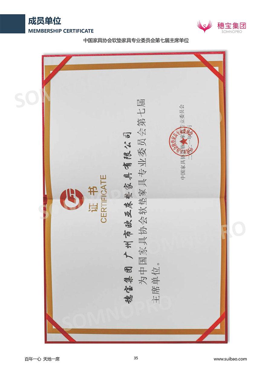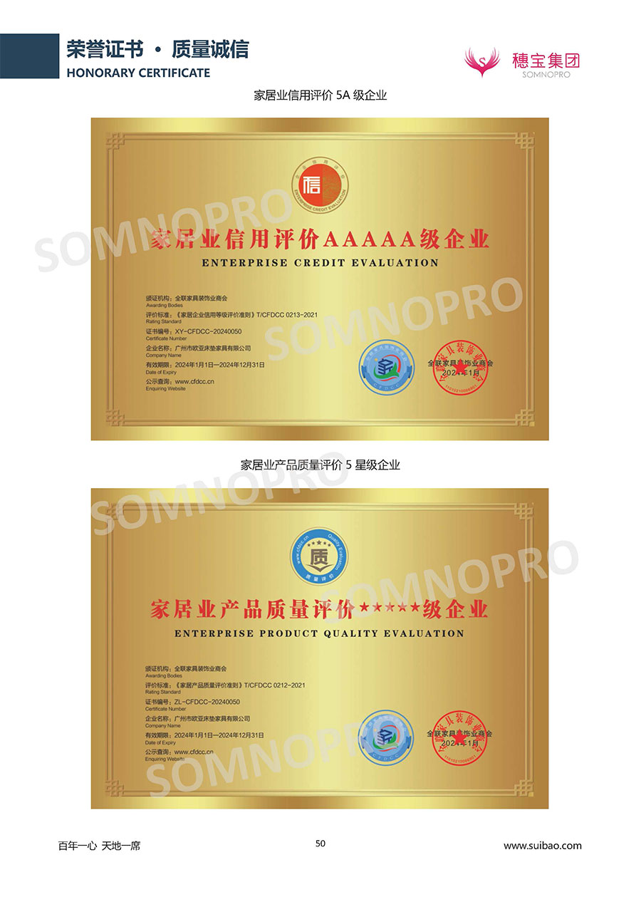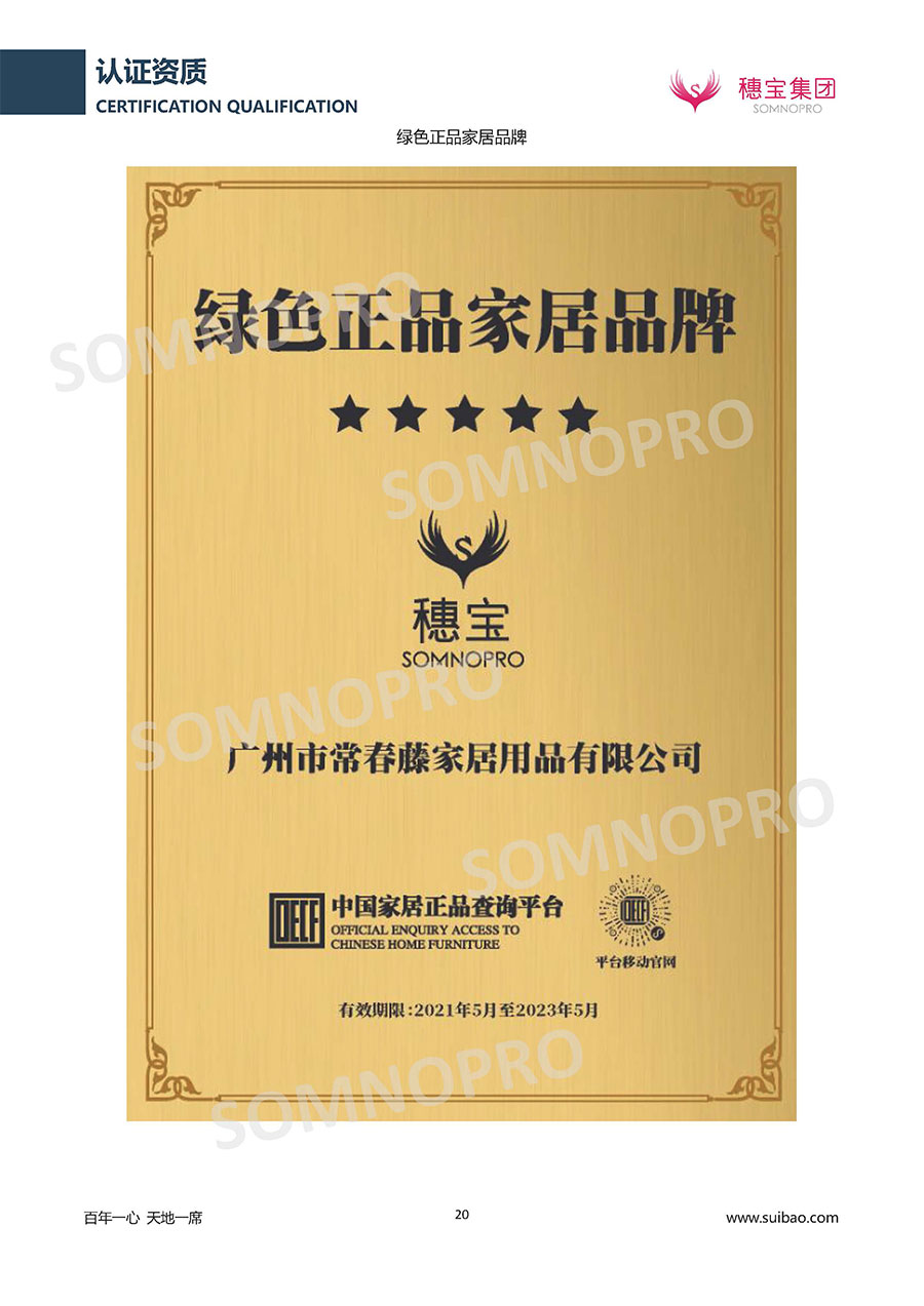 半個(gè)世紀(jì)的付出,穗寶集團(tuán)在深度睡眠領(lǐng)域收獲非凡成就,贏得業(yè)界與社會(huì)的一致贊譽(yù)。作為大家居行業(yè)的品質(zhì)倡導(dǎo)者,穗寶集團(tuán)不斷創(chuàng)新,豐富品牌實(shí)力,致力推動(dòng)中國床墊產(chǎn)業(yè)發(fā)展。至今,穗寶集團(tuán)旗下?lián)碛卸鄠€(gè)來自世界各地的優(yōu)質(zhì)品牌,包括:穗寶、詩貝艾爾、百納璐詩、睡客小鎮(zhèn)、Mr.Z早先生等;此外,穗寶集團(tuán)從世界各地甄選適合不同消費(fèi)者的優(yōu)質(zhì)睡眠產(chǎn)品,定制屬于您的睡眠空間。如今,穗寶集團(tuán)形成以研發(fā)、生產(chǎn)和銷售床墊為主營業(yè)務(wù),涉及家具、家居裝飾、酒店配套等多項(xiàng)業(yè)務(wù)的企業(yè)群體。