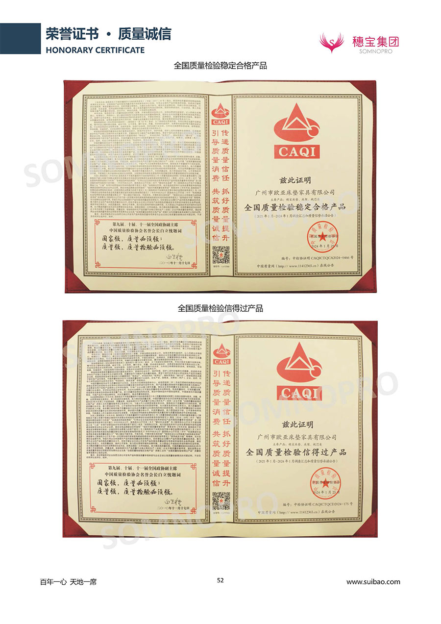 本著高品質(zhì)、高效率、重管理的原則,穗寶已通過ISO9001質(zhì)量管理體系認(rèn)證證書、ISO14001環(huán)境管理體系認(rèn)證證書、ISO45001職業(yè)健康安全管理體系認(rèn)證證書、中國環(huán)境標(biāo)志產(chǎn)品認(rèn)證證書、家居綠色環(huán)保領(lǐng)跑品牌、綠色正品家居品牌、企業(yè)標(biāo)準(zhǔn)“綠色領(lǐng)跑者”證書、CMS測量管理體系證書、CMS測量管理體系證書附件、廣東省“守信用重合同”企業(yè)、廣州歐亞-納稅信用A級(jí)納稅人(連續(xù)5年:2018-2022)、2024年中國500最具價(jià)值品牌,品牌價(jià)值高達(dá)302.89億元、廣東高價(jià)值商標(biāo)品牌(穗寶)、廣東省重點(diǎn)商標(biāo)保護(hù)名錄納入證明、廣州市勞動(dòng)關(guān)系和諧企業(yè)AA級(jí)。穗寶自創(chuàng)立以來,不斷致力于新產(chǎn)品的設(shè)計(jì)與研發(fā),多次在國內(nèi)家具展會(huì)屢獲獎(jiǎng)項(xiàng),產(chǎn)品暢銷國內(nèi)外,深受客戶一致好評(píng)。