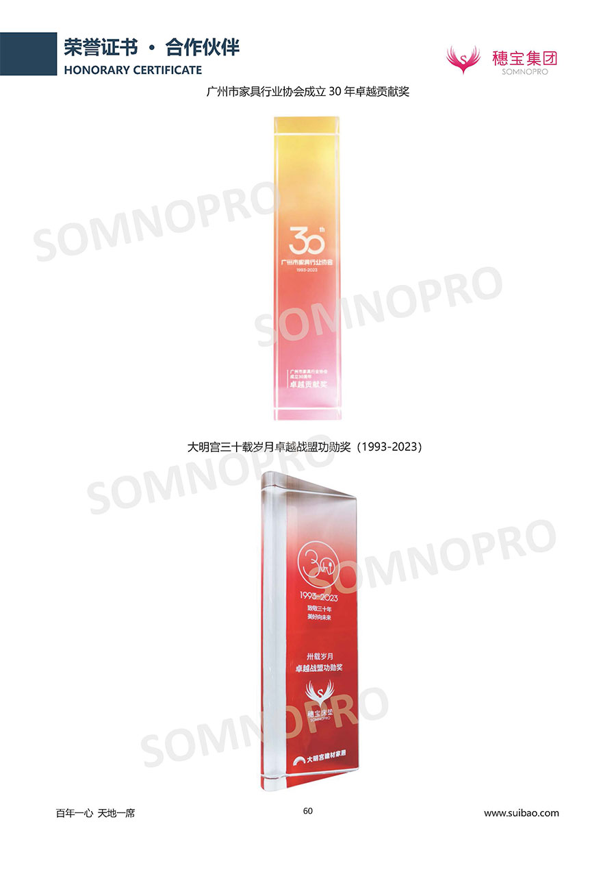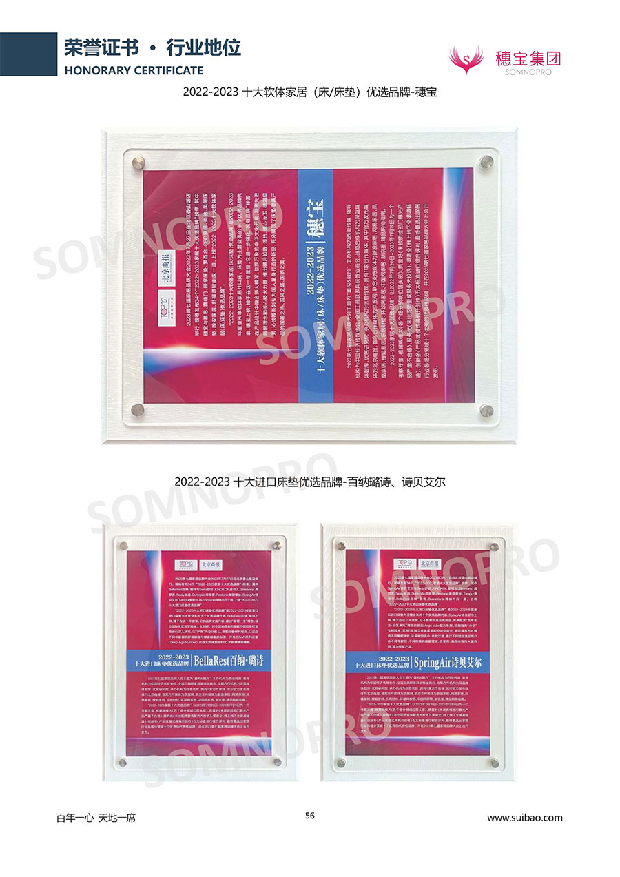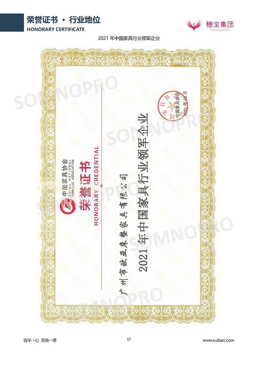 自1971年獨(dú)立研發(fā)生產(chǎn)出專屬國人的彈簧床墊,穗寶關(guān)于優(yōu)質(zhì)深度睡眠的研究已有半個(gè)世紀(jì)的歷史。穗寶一直專注床墊,專注中國消費(fèi)者的睡眠研究,針對(duì)中國人特點(diǎn)進(jìn)行優(yōu)化創(chuàng)新,不斷提升國人的睡眠體驗(yàn),只為成就每個(gè)晚上8小時(shí)的優(yōu)質(zhì)深度睡眠。憑借不斷革新的研發(fā)科技和深受消費(fèi)者信賴的產(chǎn)品品質(zhì),穗寶集團(tuán)旗下品牌和產(chǎn)品屢獲國內(nèi)外大獎(jiǎng),連續(xù)20年榮膺中國500最具價(jià)值品牌,品牌價(jià)值高達(dá)302.89億元。