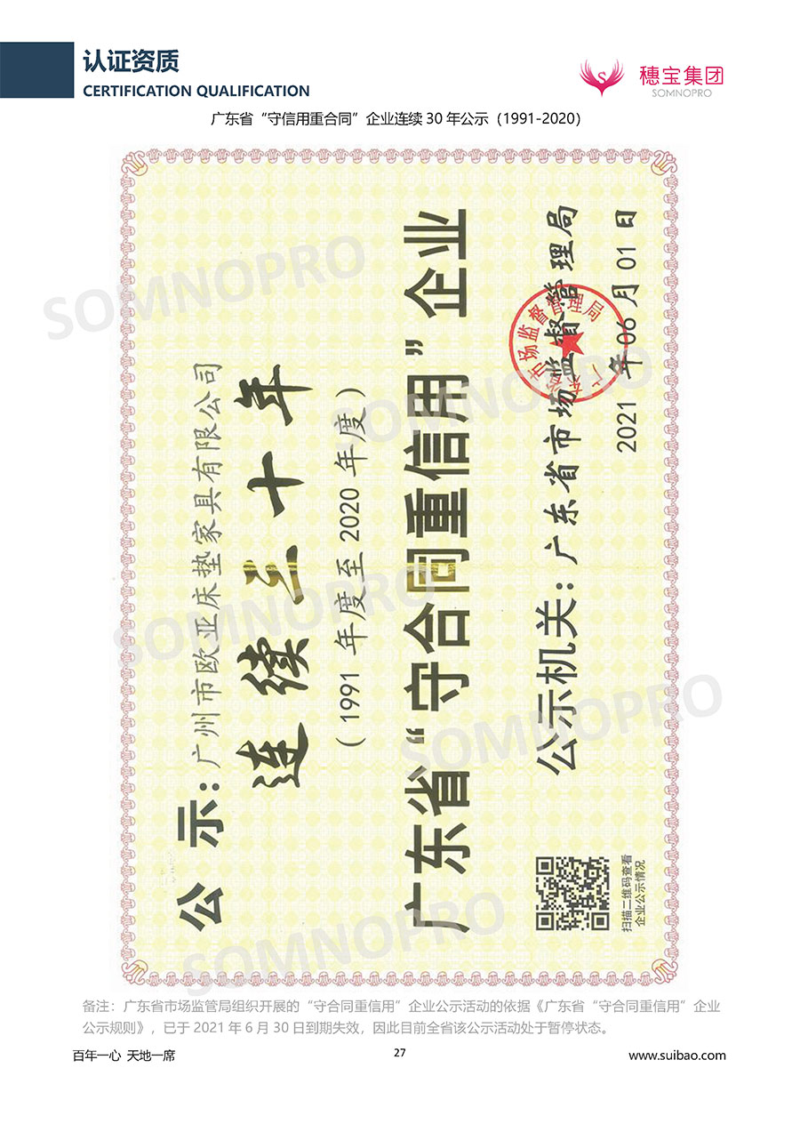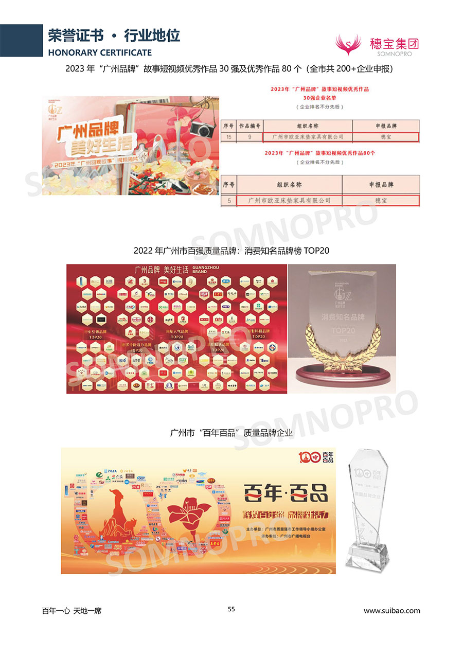 自1971年獨立研發(fā)生產出專屬國人的彈簧床墊,穗寶關于優(yōu)質深度睡眠的研究已有半個世紀的歷史。穗寶始終以“懂科學的時尚國民品牌”為定位,堅守“百年一心 天地一席”的價值追求,專注中國消費者的睡眠研究,針對中國人特點進行優(yōu)化創(chuàng)新,不斷提升國人的睡眠體驗,只為成就每個晚上8小時的優(yōu)質深度睡眠。憑借不斷革新的研發(fā)科技和深受消費者信賴的產品品質,穗寶集團旗下品牌和產品屢獲國內外大獎,連續(xù)21年榮膺中國500最具價值品牌,品牌價值高達339.23億元。
