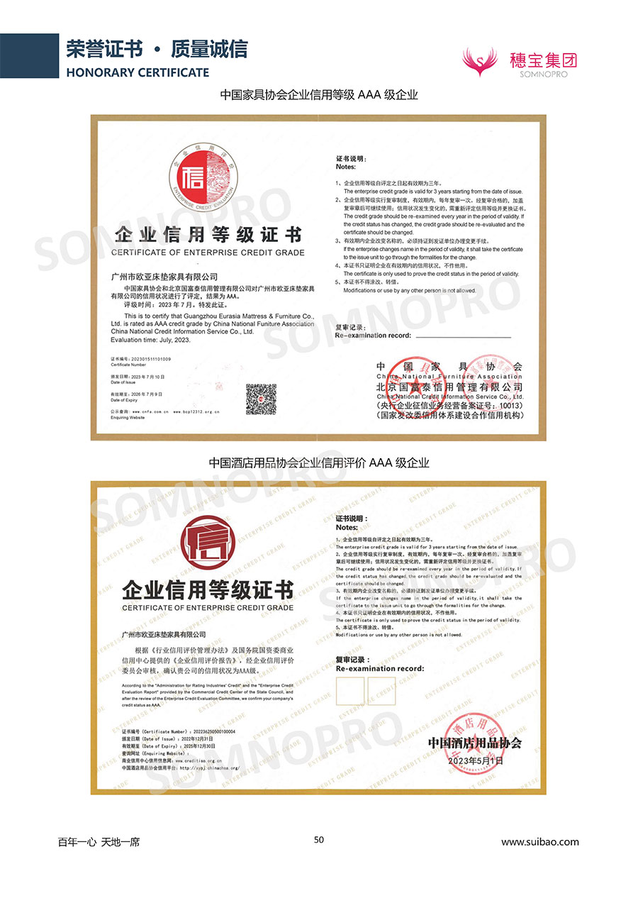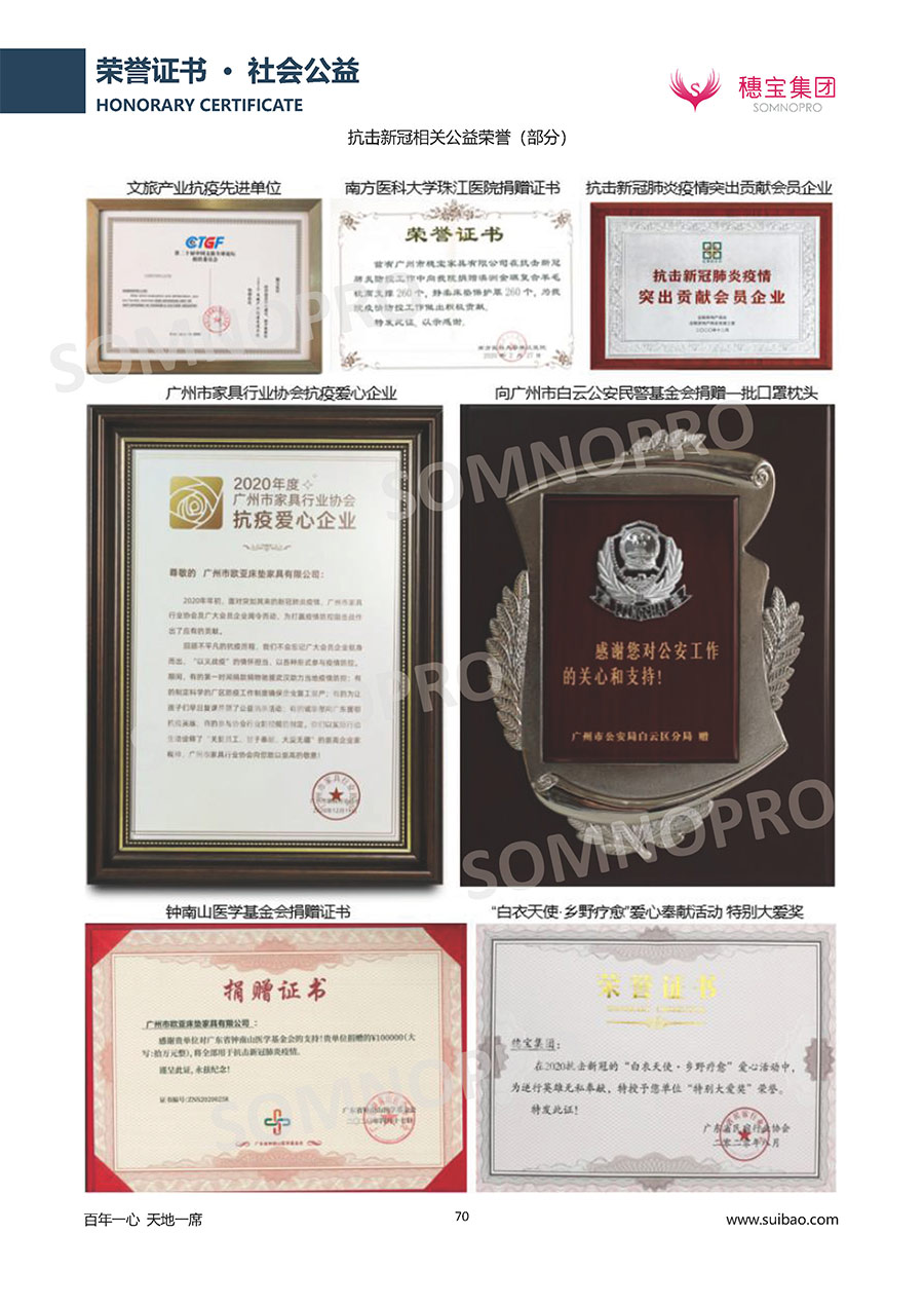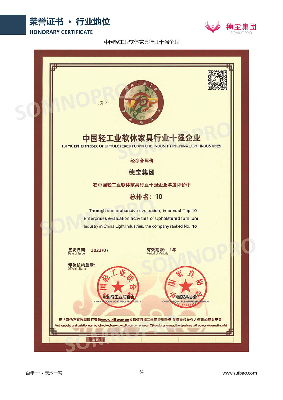 半個世紀的付出,穗寶集團在深度睡眠領域收獲非凡成就,贏得業(yè)界與社會的一致贊譽。作為大家居行業(yè)的品質倡導者,穗寶集團不斷創(chuàng)新,豐富品牌實力,致力推動中國床墊產業(yè)發(fā)展。