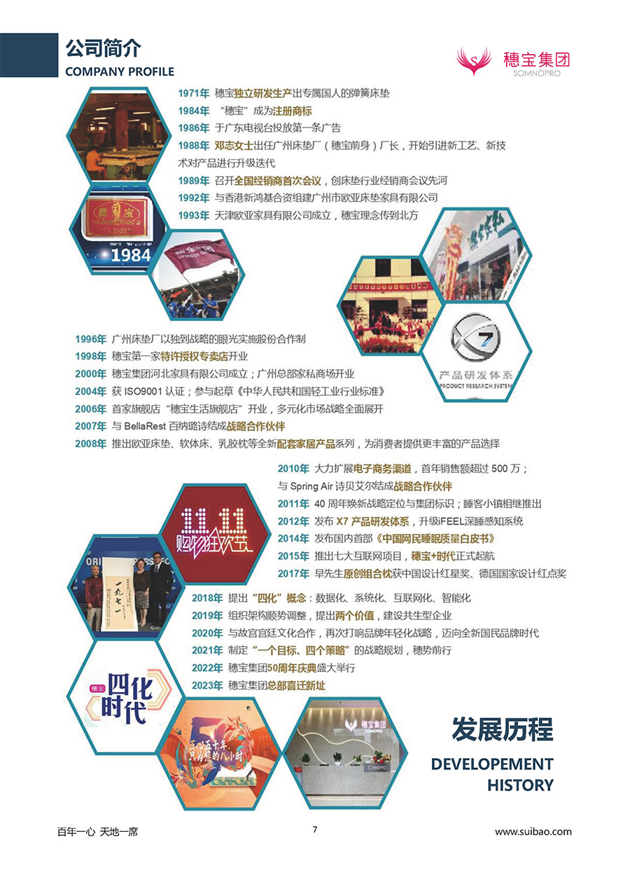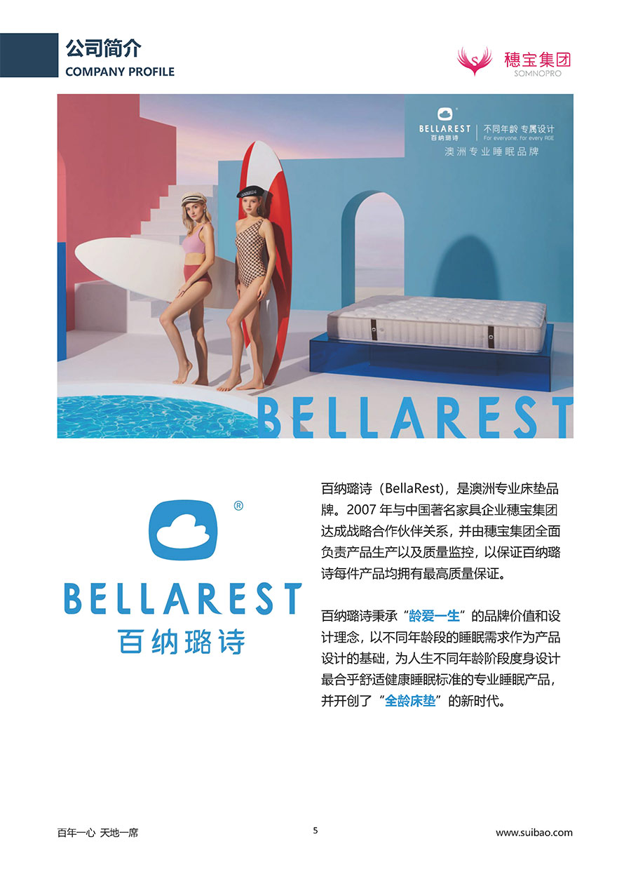 至今,穗寶集團旗下擁有多個來自世界各地的優(yōu)質品牌,包括:穗寶、詩貝艾爾、百納璐詩、睡客小鎮(zhèn)、Mr.Z早先生等;此外,穗寶集團從世界各地甄選適合不同消費者的優(yōu)質睡眠產品,定制屬于您的睡眠空間。如今,穗寶集團形成以研發(fā)、生產和銷售床墊為主營業(yè)務,涉及家具、家居裝飾、酒店配套等多項業(yè)務的企業(yè)群體。