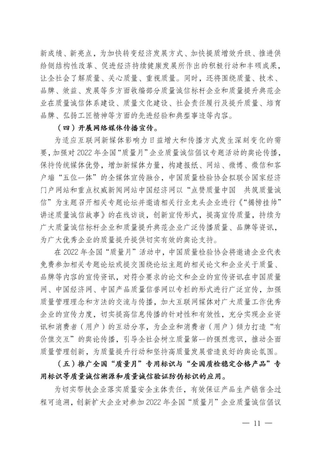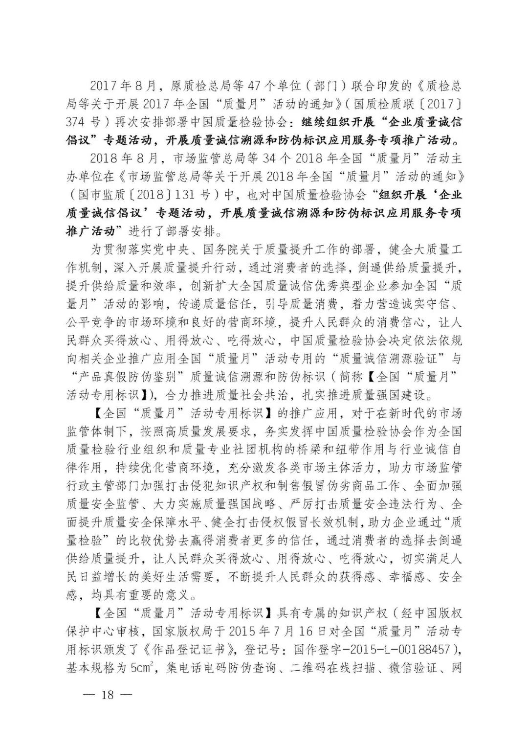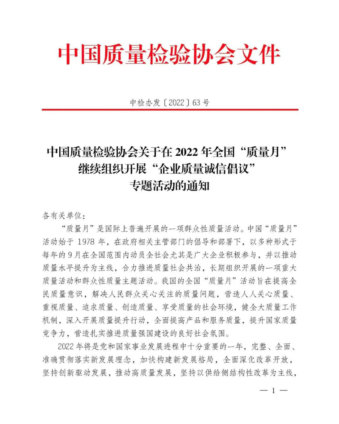 持續(xù)堅守,久久為功。45年來,全國“質(zhì)量月”活動參與者上億人次,中國質(zhì)量工作也歷經(jīng)了“質(zhì)量振興”“質(zhì)量發(fā)展”及至當下“質(zhì)量強國”的非凡歷程。中國質(zhì)量檢驗協(xié)會作為始于1996年就參與全國“質(zhì)量月”的親歷者,我們必將繼續(xù)努力舉辦好全國“質(zhì)量月”企業(yè)質(zhì)量誠信倡議專題活動,為助力擴大全國“質(zhì)量月”活動在廣大企業(yè)中的影響力作出不可或缺的積極努力。