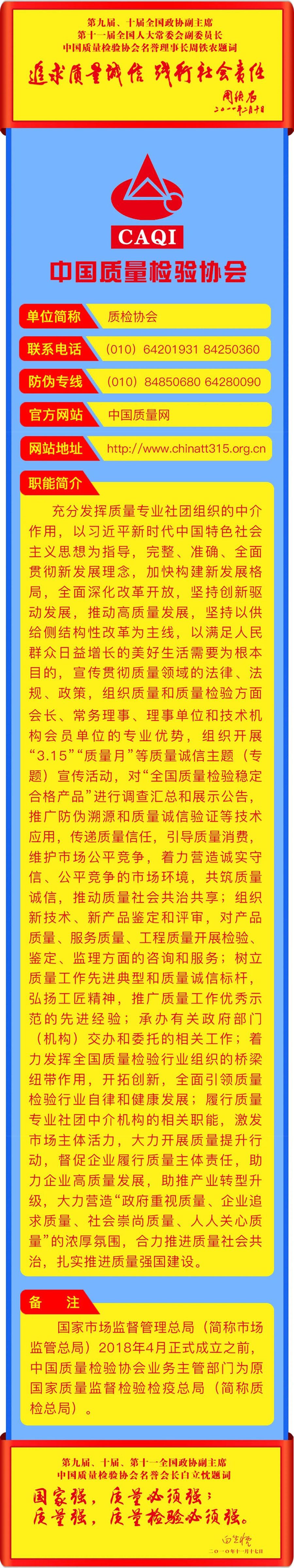李克強總理批示指出,打造集質(zhì)量、標準、技術(shù)、品牌等于一體的高品質(zhì)產(chǎn)品和服務(wù),在市場競爭中鍛就中國質(zhì)量、培育中國精品。倡導(dǎo)企業(yè)對產(chǎn)品和服務(wù)質(zhì)量作出誠信倡議,也是中國質(zhì)量檢驗協(xié)會自2004年以來組織開展全國“質(zhì)量月”企業(yè)質(zhì)量誠信倡議專題活動的要義。謹期社會各界共同努力,推進質(zhì)量社會共治,抓好產(chǎn)品和服務(wù)的高品質(zhì)質(zhì)量提升,共同為我們的質(zhì)量強國事業(yè)去奮斗!