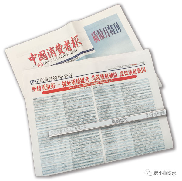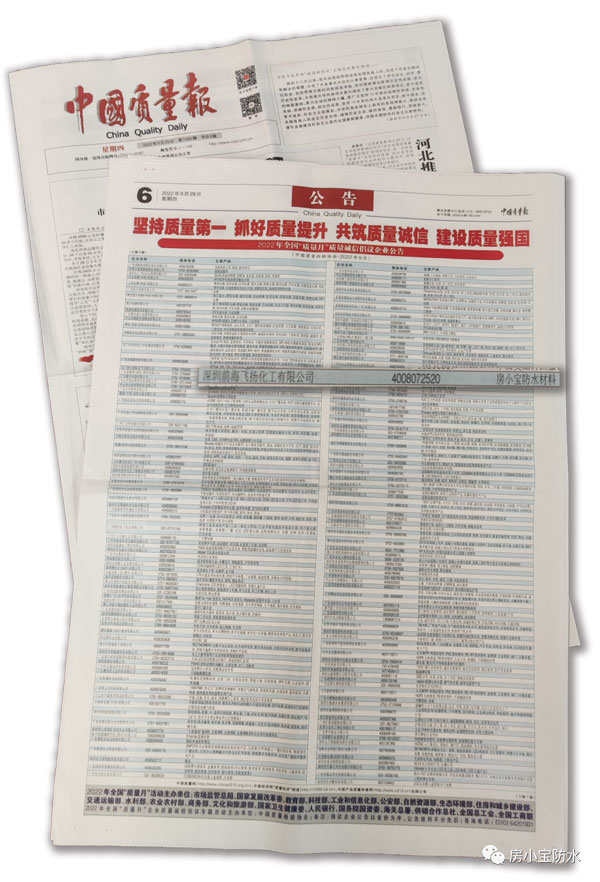 2022年全國“質(zhì)量月”企業(yè)質(zhì)量誠信倡議活動公告一經(jīng)發(fā)布,中國質(zhì)量網(wǎng)、中國消費(fèi)網(wǎng)、中國經(jīng)濟(jì)網(wǎng)等紛紛報道,房小寶防水以優(yōu)秀的產(chǎn)品品質(zhì)從眾多優(yōu)秀企業(yè)中脫穎而出!