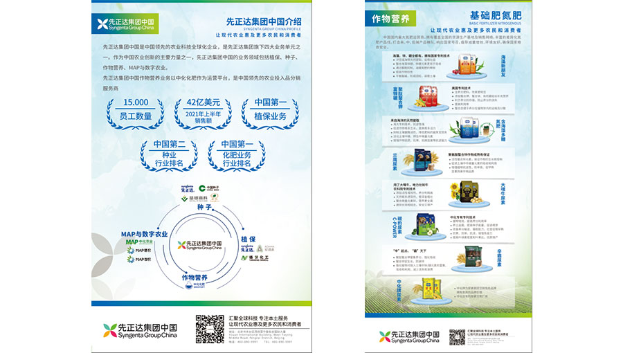先正達集團中國是中國領(lǐng)先的農(nóng)業(yè)科技全球化企業(yè),是先正達集團旗下四大業(yè)務(wù)單元之一。作為中國農(nóng)業(yè)的創(chuàng)新引擎,先正達集團中國的業(yè)務(wù)領(lǐng)域包括植保、種子、作物營養(yǎng)、MAP與數(shù)字農(nóng)業(yè)。先正達集團中國立足中國、參與全球運營,致力于將全球領(lǐng)先的科技、創(chuàng)新理念、人才資源與中國本土實力、市場洞察、優(yōu)秀團隊有機結(jié)合,引領(lǐng)現(xiàn)代農(nóng)業(yè)服務(wù)和數(shù)字化創(chuàng)新,推動中國農(nóng)業(yè)科技進步和高質(zhì)量可持續(xù)發(fā)展,助力中國農(nóng)業(yè)現(xiàn)代化轉(zhuǎn)型升級。先正達集團中國的愿景是“成為最具創(chuàng)新力的中國農(nóng)業(yè)科技全球化公司”,使命是“讓現(xiàn)代農(nóng)業(yè)惠及更多農(nóng)民和消費者”。