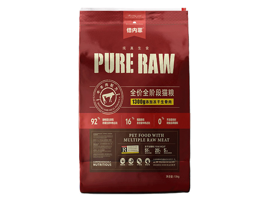 倍內(nèi)菲產(chǎn)品含有高含量的動(dòng)物性蛋白以及盡可能少的碳水化合物,所以選擇純真生鮮飲食的方式,用高蛋白主糧顆粒大搭配鮮肉凍干、生骨肉,用科學(xué)、安全、天然、營養(yǎng)、健康的飲食,讓寵物回歸自然天性。