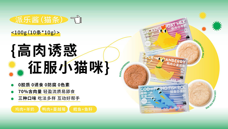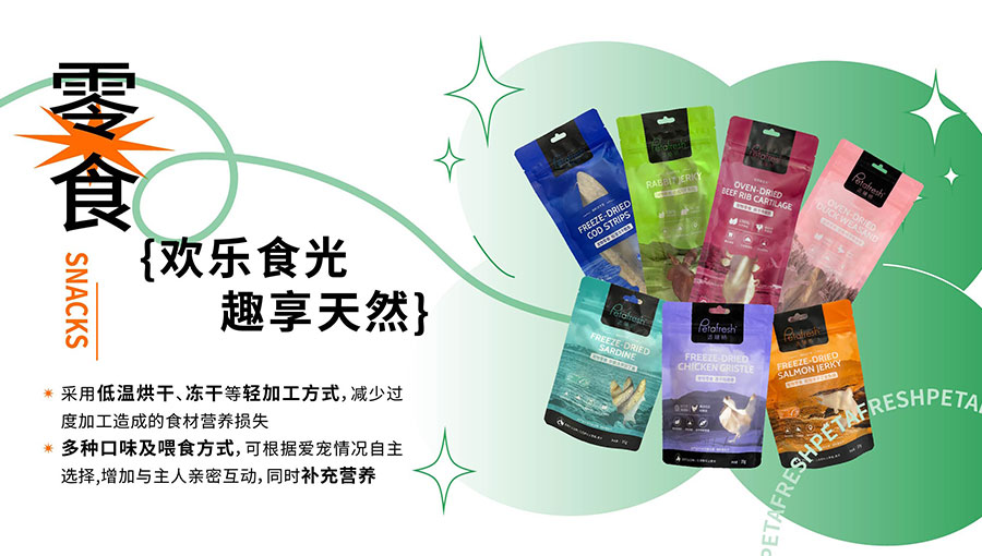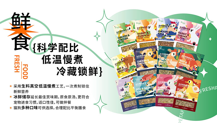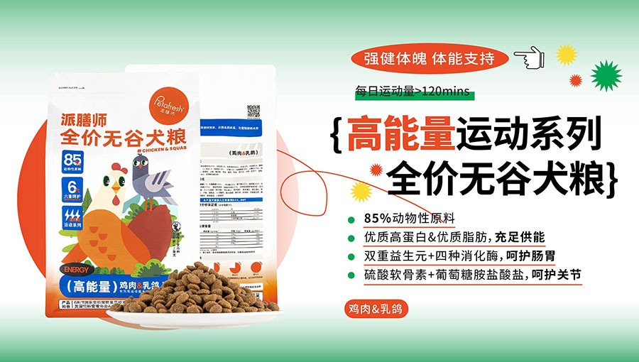 目前品牌已擁有鮮食、零食、膨化主糧等產(chǎn)品線,主打“好吸收才是真營養(yǎng)”的PD膨化干糧系列,上線后收獲無數(shù)好口碑,鮮食讓寵物方便食用到原汁原味的新鮮“膳食”,自主研發(fā)的派樂雞、鴨食卷等創(chuàng)意零食也受到消費(fèi)者的廣泛認(rèn)可與喜愛。2023年以中國犬只實際運(yùn)動量為研發(fā)基底推出全新“能量系列”犬糧,讓科學(xué)養(yǎng)寵更簡單。