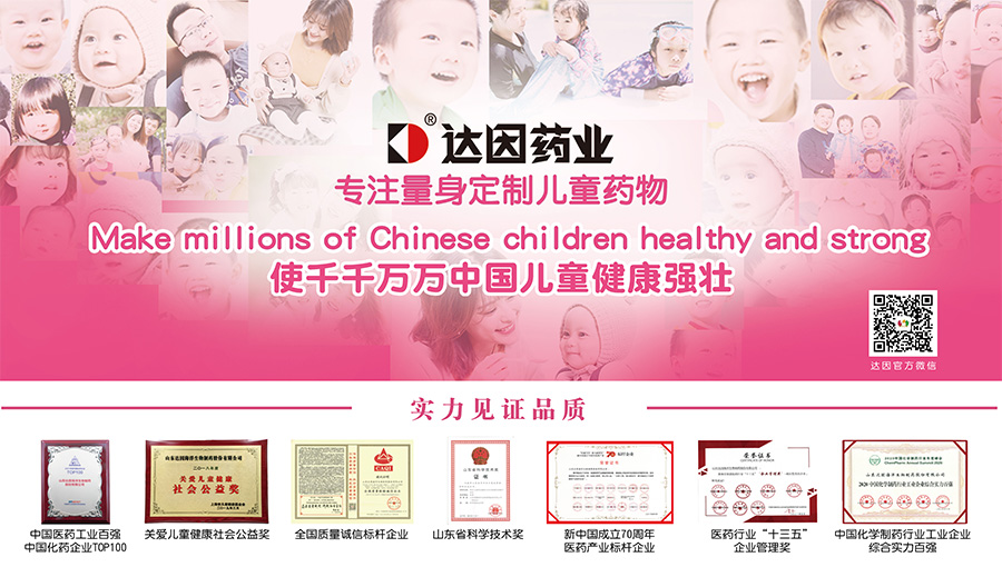 山東達(dá)因海洋生物制藥股份有限公司(簡(jiǎn)稱達(dá)因藥業(yè)),是中國(guó)醫(yī)藥企業(yè)管理協(xié)會(huì)兒童用藥專業(yè)委員會(huì)主任委員單位,以“使千千萬(wàn)萬(wàn)中國(guó)兒童健康強(qiáng)壯”為使命,專注于兒童健康領(lǐng)域產(chǎn)品研發(fā)、生產(chǎn)和市場(chǎng)營(yíng)銷,以專業(yè)和責(zé)任捍衛(wèi)兒童用藥安全,在兒科專業(yè)用藥領(lǐng)域取得了良好的口碑和覆蓋率,樹立了中國(guó)兒童用藥的旗幟地位。達(dá)因藥業(yè)產(chǎn)品線涉及兒童藥品、兒童保健食品和兒童營(yíng)養(yǎng)食品、兒童健康用品等領(lǐng)域,形成了以“兒童保健和治療”領(lǐng)域?yàn)楹诵牡膬和】诞a(chǎn)業(yè)布局。