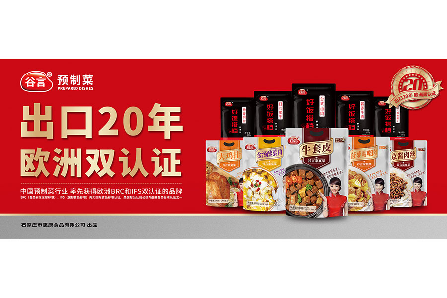 石家莊市惠康食品有限公司成立于1993年,位于中國(河北)自由貿(mào)易試驗(yàn)區(qū)正定片區(qū),占地248畝,注冊(cè)資金2億元,員工2000余人,是集農(nóng)業(yè)種植養(yǎng)殖、預(yù)制菜生產(chǎn)銷售、中高端牛肉和果蔬食品加工出口等為一體的大型食品企業(yè)。旗下有“谷言”、“捷百味”、“谷言牧場(chǎng)”、“嗨飯師”等品牌,產(chǎn)品包括預(yù)制菜、中高端牛肉、自熱產(chǎn)品、速食等,產(chǎn)品出口至歐美、東亞等十余個(gè)國家。2019年被授予“農(nóng)業(yè)產(chǎn)業(yè)化國家重點(diǎn)龍頭企業(yè)”,2022年率先通過“BRC、IFS歐洲雙認(rèn)證”,是國內(nèi)首家通過歐洲雙認(rèn)證的預(yù)制菜企業(yè)。