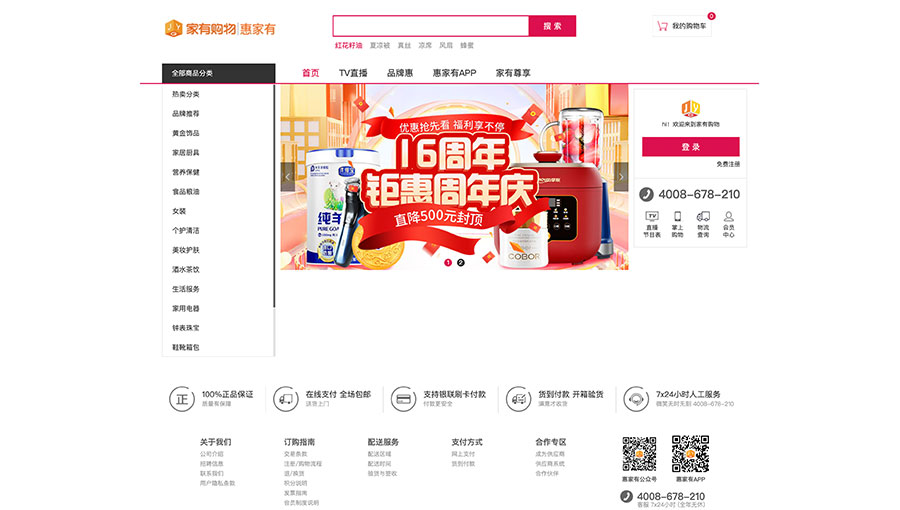 主要產(chǎn)品:家居用品、家用電器、服裝鞋帽、食品、美妝、珠寶首飾、收藏品、運(yùn)動健康用品、家紡用品等產(chǎn)品