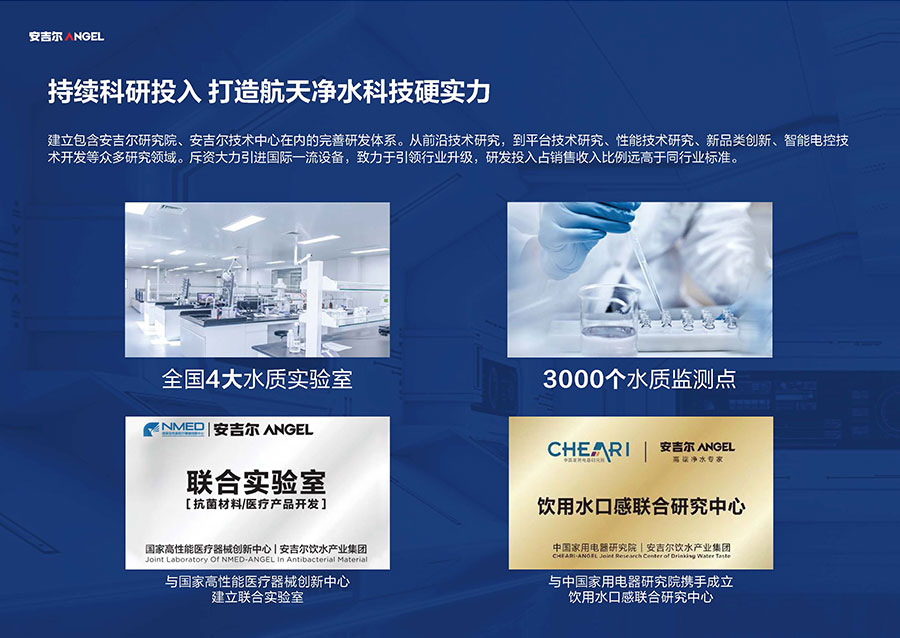 37年來,安吉爾始終堅(jiān)持科技創(chuàng)新,不斷引領(lǐng)行業(yè)技術(shù)升級。參與17項(xiàng)國家及行業(yè)標(biāo)準(zhǔn)制修訂,累計(jì)獲得900余項(xiàng)專利,建立4大水質(zhì)實(shí)驗(yàn)室。2023年,安吉爾憑實(shí)力斬獲全球9項(xiàng)發(fā)明獎,包含3項(xiàng)日內(nèi)瓦國際發(fā)明展獎項(xiàng),6項(xiàng)亞洲創(chuàng)新發(fā)明展獎項(xiàng)。