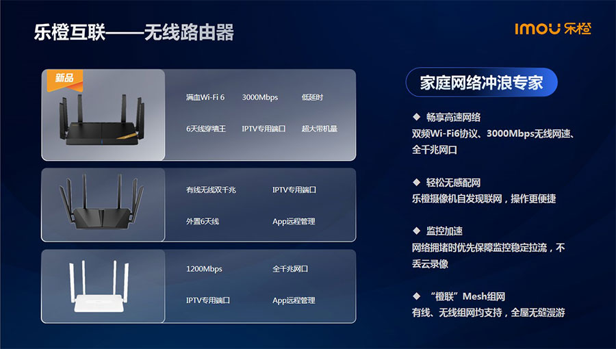 主要產(chǎn)品:樂橙智能攝像機(jī)、智能門鎖、門鈴、路由器等