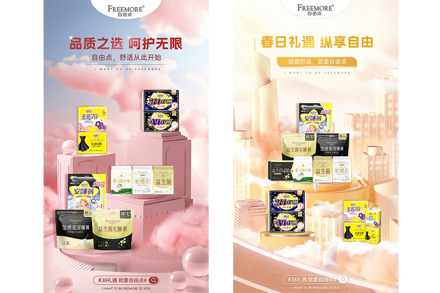 主要產(chǎn)品:自由點(diǎn)益生菌衛(wèi)生巾、有機(jī)純棉衛(wèi)生巾、敏感肌衛(wèi)生巾、無感七日衛(wèi)生巾、好之系列紙尿褲、拉拉褲