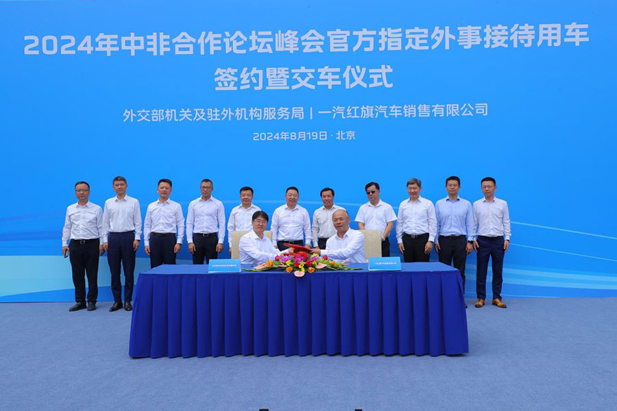 與國同頻,與國共進。8月19日,2024年中非合作論壇峰會官方指定外事接待用車簽約暨交車儀式在北京圓滿舉行。一汽紅旗將攜旗下C+級旗艦轎車新紅旗H9、東方豪華旗艦MPV紅旗HQ9、豪華禮賓新旗艦紅旗國悅,在本次論壇峰會期間為與會貴賓提供高水準的出行服務(wù),向世界展示中國汽車工業(yè)創(chuàng)新發(fā)展成果,彰顯“以禮興邦,以禮固邦”的大國氣度。