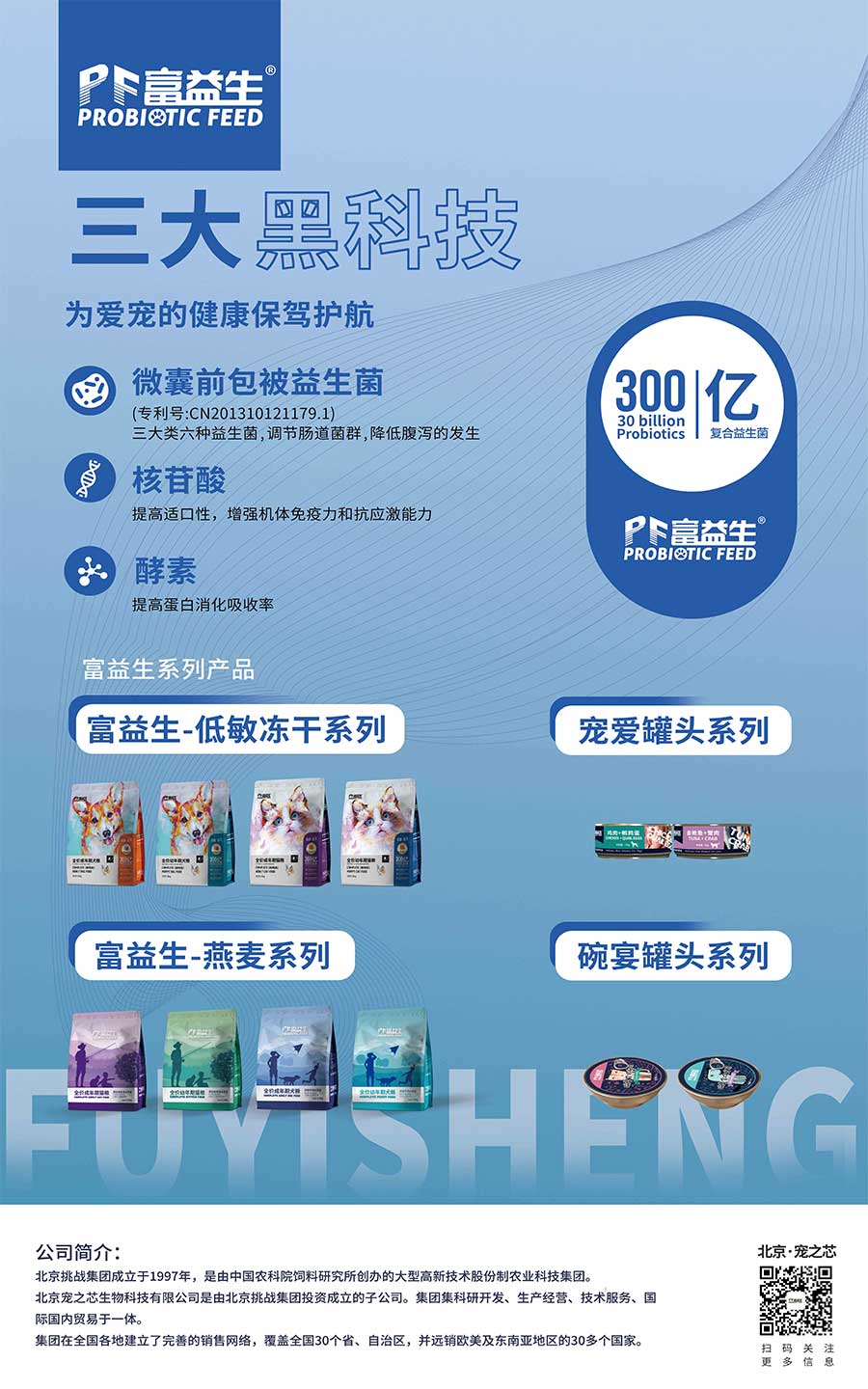 北京挑戰(zhàn)集團將科技創(chuàng)新視為企業(yè)生命的源泉,組建挑戰(zhàn)研究院,其中博士生導師3人,博士14人,碩士40余人,擁有國家級“生物飼料開發(fā)國家工程研究中心”“院士專家工作站”和“企業(yè)博士后流動站”各一個。至今獲取專利授權31件,主持承擔國家和行業(yè)研發(fā)項目共23項。挑戰(zhàn)集團研究院院長張廣民博士帶領寵物食品研發(fā)團隊經過多年的研究與試驗成功將全價寵物干糧與多種益生菌及酶制劑完美的結合-富益生全價寵物食品。通過添加挑戰(zhàn)集團自主產品“微囊前包被益生菌”“核苷酸”及酶制劑使富益生產品獲得了強大的產品優(yōu)勢。