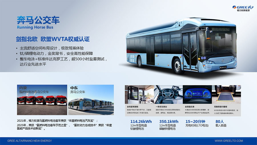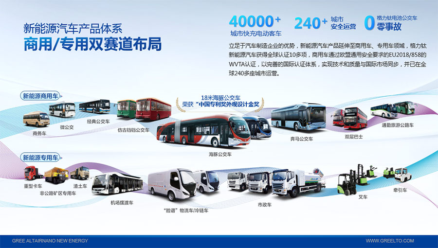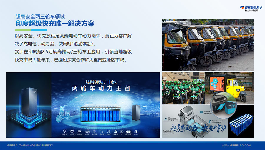 以完善的研發(fā)體系,格力鈦加快技術(shù)創(chuàng)新與產(chǎn)業(yè)升級的步伐。格力鈦研發(fā)的格力鈦電池安全性長期領(lǐng)跑行業(yè),憑借具有高安全、大倍率、快充放、耐寬溫、長壽命等特性,被選為“國家制造業(yè)單項(xiàng)冠軍產(chǎn)品”,廣泛應(yīng)用于新能源汽車以及工商業(yè)園區(qū)、通訊基站、電網(wǎng)調(diào)頻、軌道交通、風(fēng)光消納、船舶岸電、家庭住宅、軍事科研等儲能領(lǐng)域,具有廣闊的市場前景和應(yīng)用價值。目前,格力鈦儲能產(chǎn)品已在丹麥、瑞士、芬蘭等全球30多個國家和地區(qū)使用,新能源汽車產(chǎn)品在北京、杭州、武漢、成都、青島、哈爾濱、包頭、??诘热?40多座城市運(yùn)營,12年全球零電池事故安全運(yùn)行。
