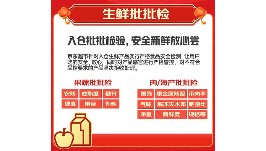 京東超市致力于為消費者提供便捷、安全、高品質(zhì)的在線購物體驗,建立了一整套完備的質(zhì)量管控體系,并通過嚴格的商品篩選、品控管理,以及高效的物流配送及售后服務,保證用戶的最佳購物體驗。京東超市還聯(lián)合權威第三方檢測機構建成了京東超市品質(zhì)實驗室,具備農(nóng)藥殘留、獸藥殘留、非法添加、動物源性檢測、物理測試、正品鑒定等19大類檢測能力,并與遍布全國45個亞洲一號倉庫的安全檢測實驗室形成完備的品控體系,覆蓋生鮮、糧油調(diào)味、休食飲品、母嬰、個護、家清、酒類、寵物、玩具、農(nóng)用品十大品類全部商品。今后,京東超市會更加擴大商品生產(chǎn)監(jiān)督力度、抽檢力度、供應商幫扶力度,依托嚴格的品控措施,為消費者帶來優(yōu)質(zhì)商品及放心購物體驗。
