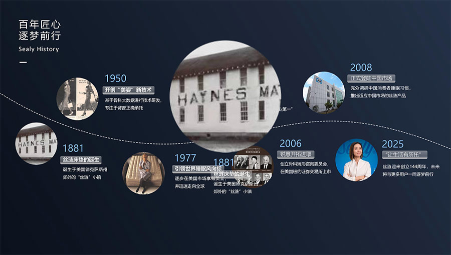 絲漣SEALY1881年誕生于美國,自1885年第一張絲漣床墊問世伊始,便憑借其卓越性能與舒適安睡體驗(yàn)聲名大噪。1950年,絲漣開創(chuàng)床墊與醫(yī)學(xué)權(quán)威共研的先河,絲漣美姿以科學(xué)的脊柱支撐理念徹底重塑了床墊行業(yè)。75年來,持續(xù)的技術(shù)升級和創(chuàng)新使得美姿彈簧不斷進(jìn)化,只為打造更加舒適健康的睡眠體驗(yàn)。