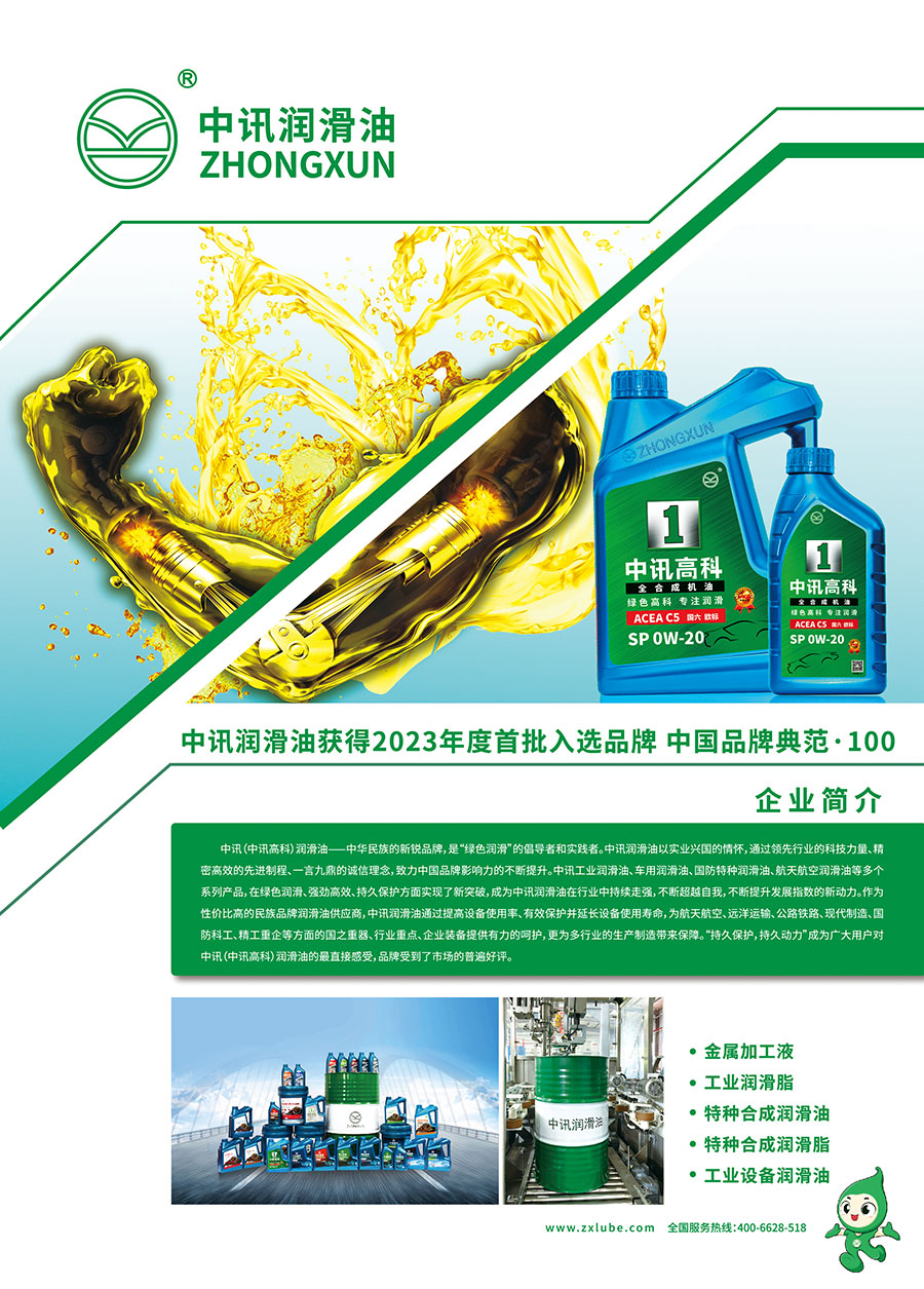 中華民族的新銳品牌,是“綠色潤滑”的倡導(dǎo)者和實(shí)踐者。中訊潤滑油以實(shí)業(yè)興國的情懷,通過領(lǐng)先行業(yè)的科技力量、精密高效的先進(jìn)制程、一言九鼎的誠信理念,致力中國品牌影響力的不斷提升。中訊工業(yè)潤滑油、車用潤滑油、國防特種潤滑油、航天航空潤滑油等多個(gè)系列產(chǎn)品,在綠色潤滑、強(qiáng)勁高效、持久保護(hù)方面實(shí)現(xiàn)了新突破,成為中訊潤滑油在行業(yè)中持續(xù)走強(qiáng),不斷超越自我,不斷提升發(fā)展指數(shù)的新動(dòng)力。作為性價(jià)比高的民族品牌潤滑油供應(yīng)商,中訊潤滑油通過提高設(shè)備使用率、有效保護(hù)并延長設(shè)備使用壽命,為航天航空、遠(yuǎn)洋運(yùn)輸、公路鐵路、現(xiàn)代制造、國防科工、精工重企等方面的國之重器、行業(yè)重點(diǎn)、企業(yè)裝備提供有力的呵護(hù),更為多行業(yè)的生產(chǎn)制造帶來保障。“持久保護(hù),持久動(dòng)力”成為廣大用戶對中訊(中訊高科)潤滑油的最直接感受,品牌受到了市場的普遍好評。