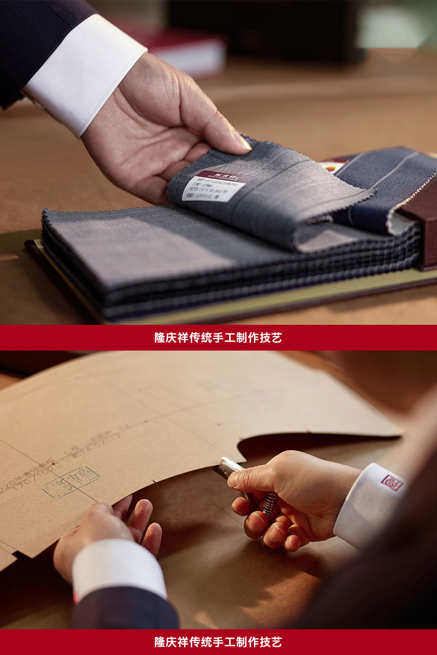 隆慶祥以量身定制為核心特色,提供從面料選擇、款式設計到工藝優(yōu)化、售后服務的全程服務,產品均為“單人單版、單版單裁、單裁單做”,以獨一無二的專屬性彰顯尊貴榮耀。每套西裝定面料、定款式、制版、裁剪、制作、試樣、后道整理、取件共八道工序,均采用406道工序,而且大量工序是手工制作。產品均“單人單版、單版單裁、單裁單做”,以獨一無二的專屬性彰顯尊貴榮耀。