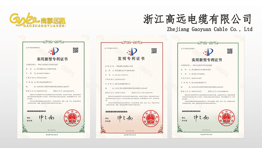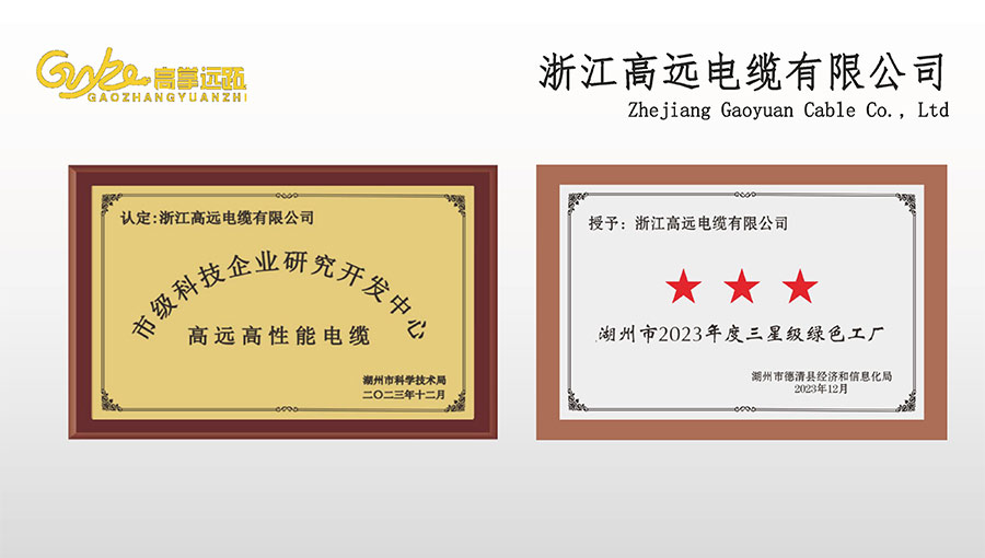 高遠電纜是浙江省電線電纜重點工業(yè)企業(yè),浙江省專精特新企業(yè)、浙江省科技型企業(yè),浙江省標準化良好行為AAA級企業(yè);獲得了國家頒發(fā)的生產(chǎn)許可證,通過了CCC國家強制性產(chǎn)品認證,ISO9001質(zhì)量體系認證,ISO14001環(huán)境體系認證,OHSAS18001職業(yè)健康安全管理體系認證,PCCC產(chǎn)品認證、B1級燃燒性能授權(quán)書;榮獲浙江省著名商標,浙江省重合同守信譽企業(yè),浙江省優(yōu)質(zhì)產(chǎn)品,市級研究開發(fā)中心,清潔工廠,綠色工廠等國家、省、市授權(quán)的榮譽稱號,取得了多項發(fā)明專利、實用型專利。