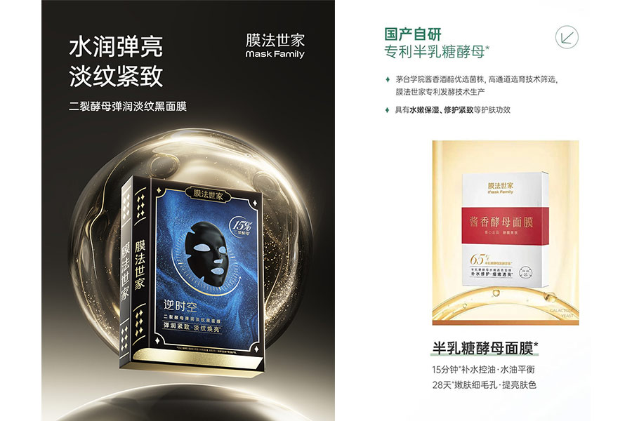 主要產(chǎn)品:膜法世家逆時(shí)空二裂酵母彈潤(rùn)緊致黑面膜、膜法世家逆時(shí)空二裂酵母彈潤(rùn)淡紋黑面膜、膜法世家紫草泥清潔面膜、膜法世家綠豆清潔泥膜(經(jīng)典版)、膜法世家綠豆清潔泥膜(祛痘版)、二裂酵母彈潤(rùn)緊致精華液