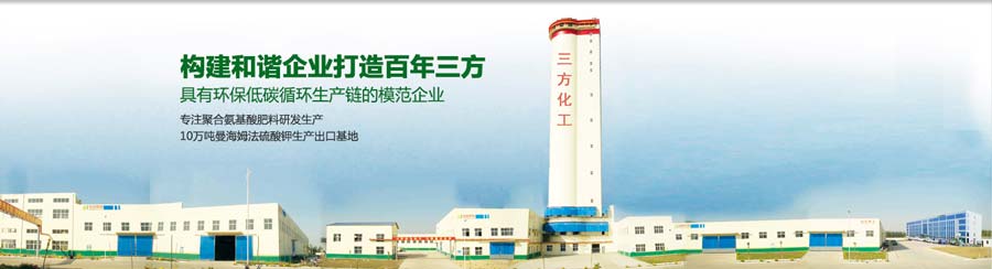 山東三方化工集團有限公司是一家以生產(chǎn)化肥為主,集化工、科研、房產(chǎn)開發(fā)、金融商貿(mào)及農(nóng)化服務(wù)于一體的大型集團化企業(yè)。公司成立于1975年,現(xiàn)有總資產(chǎn)8億元,職工1200余人,占地面積1000余畝。主要產(chǎn)品有復(fù)合肥、硫酸鉀、鹽酸、精細(xì)化工等產(chǎn)品,年綜合生產(chǎn)能力120萬噸,是北方主要的曼海姆法硫酸鉀生產(chǎn)基地,產(chǎn)品遠(yuǎn)銷日本、澳大利亞、埃及、東南亞等海外國家和地區(qū)。