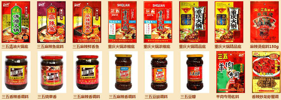 主要產(chǎn)品:“三五”牌、“世全”牌、“火成”牌、“三佳”牌火鍋佐料;“三五”牌火鍋調(diào)料