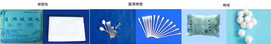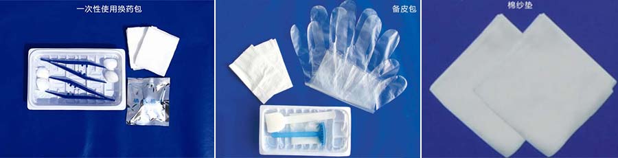 主要產(chǎn)品:金環(huán)騰月無(wú)菌產(chǎn)包、手術(shù)包、導(dǎo)尿包、換藥包、紗布?jí)K、無(wú)菌醫(yī)用墊等