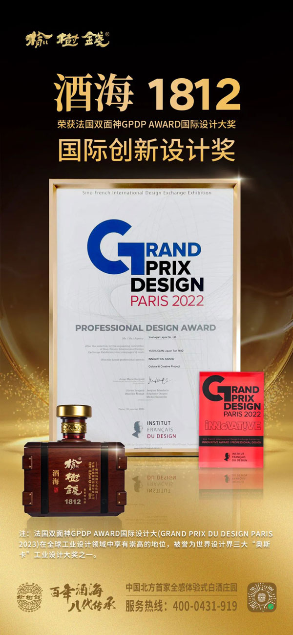 《榆樹(shù)錢酒海1812》,成功通過(guò)最終評(píng)審榮獲法國(guó)雙面神GPDP AWARD國(guó)際設(shè)計(jì)大獎(jiǎng)-國(guó)際創(chuàng)新設(shè)計(jì)獎(jiǎng)!