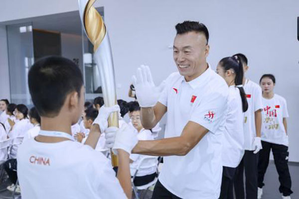 活動現(xiàn)場舉行了莊嚴(yán)隆重的奧運(yùn)火炬?zhèn)鬟f儀式,將活動推向高潮。2024年巴黎奧運(yùn)會舉辦之際,安踏希望班的同學(xué)們也將高中畢業(yè)步入大學(xué),迎來人生新階段?;鹁嬖谕瑢W(xué)和嘉賓的手中傳遞,點(diǎn)燃了同學(xué)們對未來的憧憬,體育的力量燃起了沖刺的斗志。