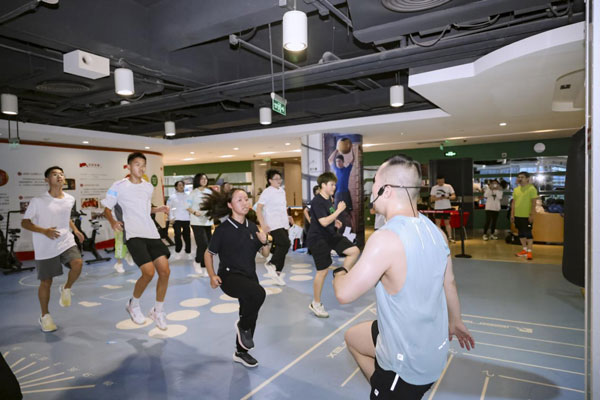 安踏集團(tuán)董事局主席丁世忠與安踏希望班的同學(xué)們在公司海景健身房一同運(yùn)動