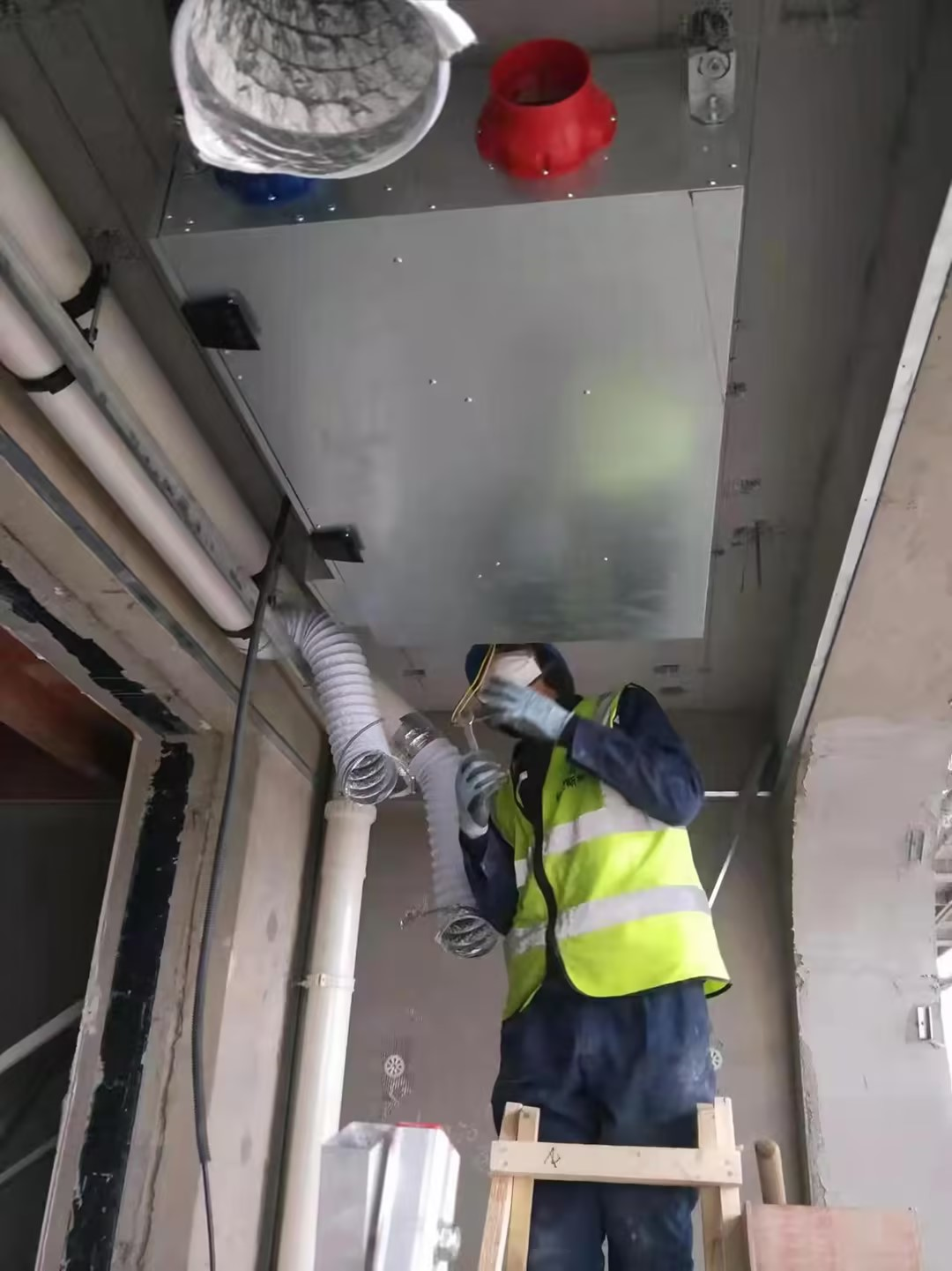 融信旭輝世紀古美項目作為上海首個超低能耗住宅項目,整個項目占地37509㎡,建筑面積82519.8㎡,共758戶,每戶均配有超低能耗新風(fēng)系統(tǒng),新風(fēng)系統(tǒng)工程內(nèi)容包括超低能耗新風(fēng)系統(tǒng)選型供貨、施工安裝、調(diào)試驗收和售后維保工作。回望從2021年2月初次配合,到2023年9月的交付完成,將近三年的時間里,有太多的經(jīng)驗可以分享。