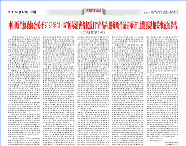 - 人民網(wǎng)報(bào)道——中國(guó)質(zhì)量檢驗(yàn)協(xié)會(huì):強(qiáng)質(zhì)量重承諾 引導(dǎo)質(zhì)量消費(fèi)(2026-03-13)