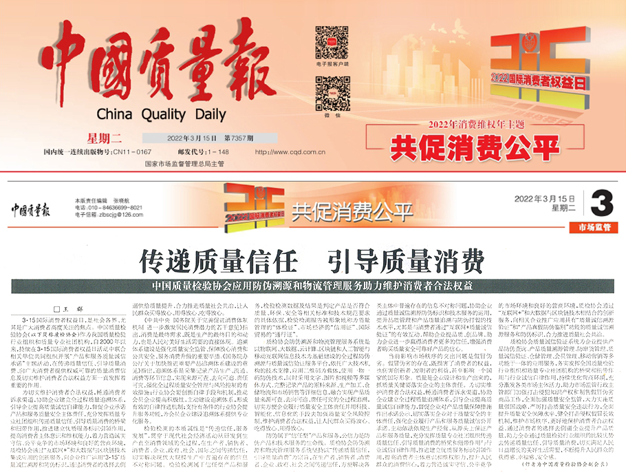 中國(guó)消費(fèi)者報(bào)(3月15日刊第4版):傳遞質(zhì)量信任 助力產(chǎn)品和服務(wù)質(zhì)量提升 引導(dǎo)質(zhì)量消費(fèi) 服務(wù)經(jīng)濟(jì)社會(huì)高質(zhì)量發(fā)展——中國(guó)質(zhì)量檢驗(yàn)協(xié)會(huì)組織開(kāi)展2021年“3.15”國(guó)際消費(fèi)者權(quán)益日“產(chǎn)品和服務(wù)質(zhì)量誠(chéng)信承諾”主題活動(dòng)綜述