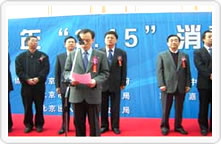 國家質檢總局組織的2005年3·15咨詢活動 現(xiàn)場掠影(圖為:北京市人民政府陸昊副市長 在活動開幕式上講話) |