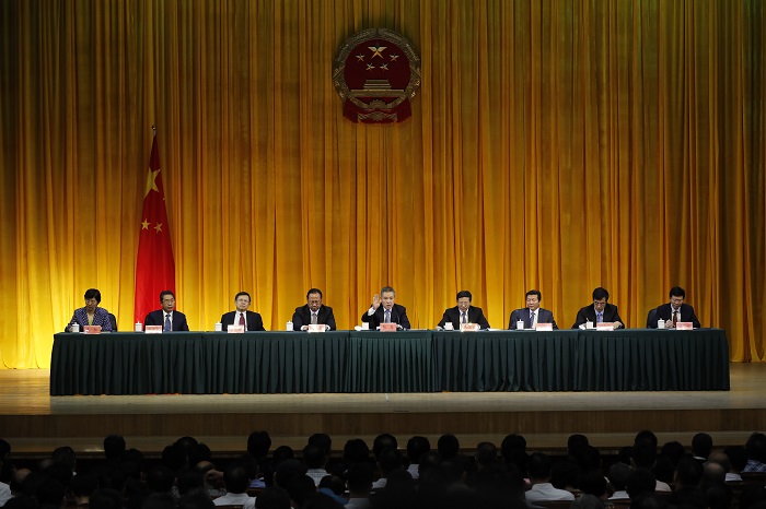 會議舉行了憲法宣誓儀式。下午3時30分,在張茅的監(jiān)誓下,馬正其宣布宣誓儀式開始??偩謾C關138名新任司局級干部集體列隊,面向國徽、國旗,同唱中華人民共和國國歌。領誓人撫按憲法,宣讀誓言,其他宣誓人列隊站立,跟誦誓詞。