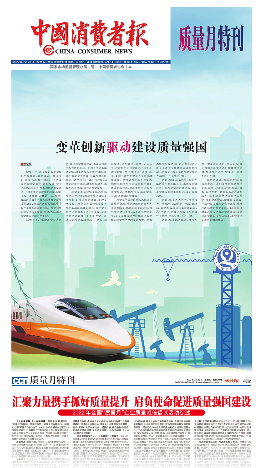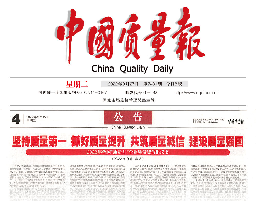 中國消費(fèi)者報(bào):堅(jiān)持質(zhì)量第一 抓好質(zhì)量提升 共筑質(zhì)量誠信 建設(shè)質(zhì)量強(qiáng)國