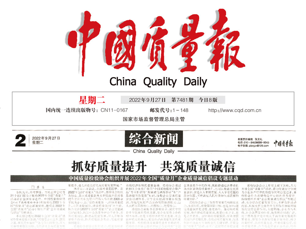 中國質(zhì)量報(bào):抓好質(zhì)量提升 共筑質(zhì)量誠信